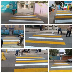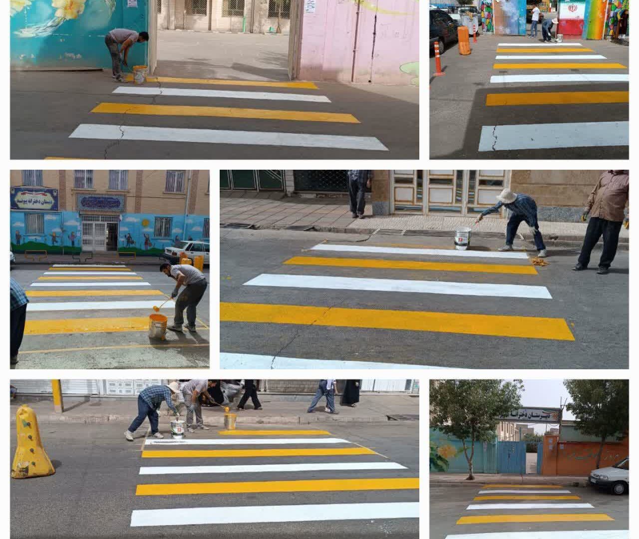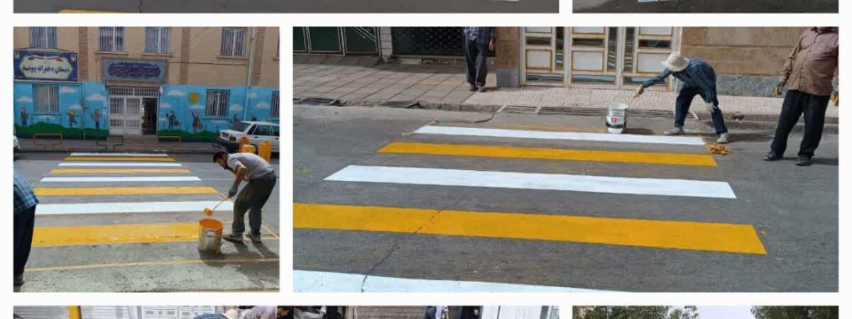 آمادهسازی و رنگآمیزی گذرگاههای عابر پیاده در آستانه بازگشایی مدارس و آغاز سال تحصیلی جدید